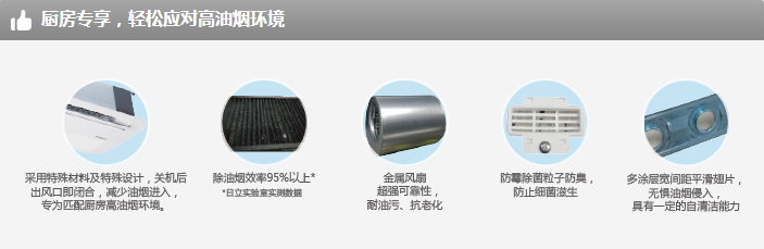 ● 采用特殊材料及特殊設(shè)計(jì),關(guān)機(jī)后出風(fēng)口即閉合,減少油煙進(jìn)入,專為匹配廚房高油煙環(huán)境;