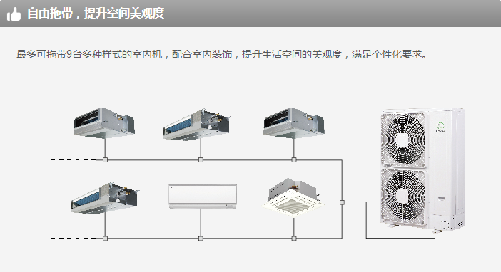 SET-FREE mini 變頻中央空調(diào),是日立專為家庭用戶設(shè)計(jì)的中央空調(diào)系統(tǒng),產(chǎn)品具有超級(jí)舒適、健康節(jié)能、性能穩(wěn)定等優(yōu)點(diǎn),室內(nèi)機(jī)更通過(guò)與室內(nèi)裝修的完美配合,大大節(jié)省空間,盡顯現(xiàn)代生活高檔品位。SET-FREE mini變頻中央空調(diào)廣泛應(yīng)用于公寓、別墅等家庭室內(nèi)環(huán)境。